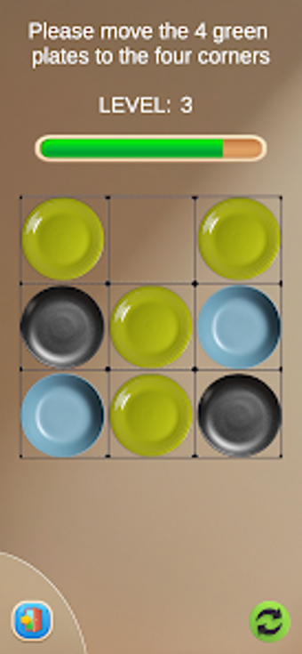 Move Green Plate is een strategisch puzzelspel beschikbaar op Android, waarin spelers een 3x3 grid met borden moeten beheren. De borden zijn in drie kleuren: zwart, wit en groen, en de startposities zijn willekeurig. Het doel van het spel is om de groene borden in de vier hoeken van het grid te plaatsen om naar het volgende niveau te kunnen gaan. Spelers moeten nadenken over hun zetten om de juiste configuratie te bereiken en zo verder te komen in het spel.